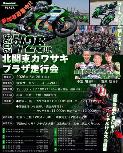 5月26日(火)に北関東カワサキプラザ走行会を開催いたします。